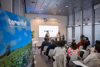La segunda de las acciones previstas ha tenido lugar el día 30 en el sky business del recinto deportivo, en la parte alta de la pista central, donde se ha realizado una presentación del destino a medios e influencers y una degustación de vinos y quesos de Tenerife.