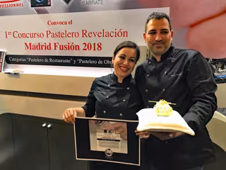Alexis García, que regenta junto a su esposa, Marlene Hernández, '100% Pan y Pastelería', en el sur de la isla (Playa San Juan), pone así el broche de oro a una experiencia sobresaliente en 'Madrid Fusión', ya que este lunes participó como ponente, siendo la primera vez en la historia de Canarias que un pastelero de obrador imparte una conferencia sobre su trabajo en el sector de la alta pastelería en este foro.