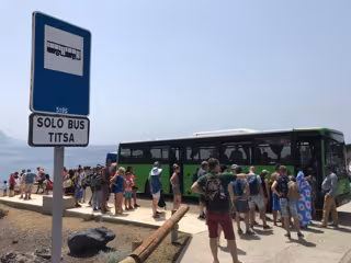 Archivo - Un grupo de pasajeros hacen cola para subir a la guagua que cubre la línea Buenavista-Punta de Teno - TITSA - Archivo