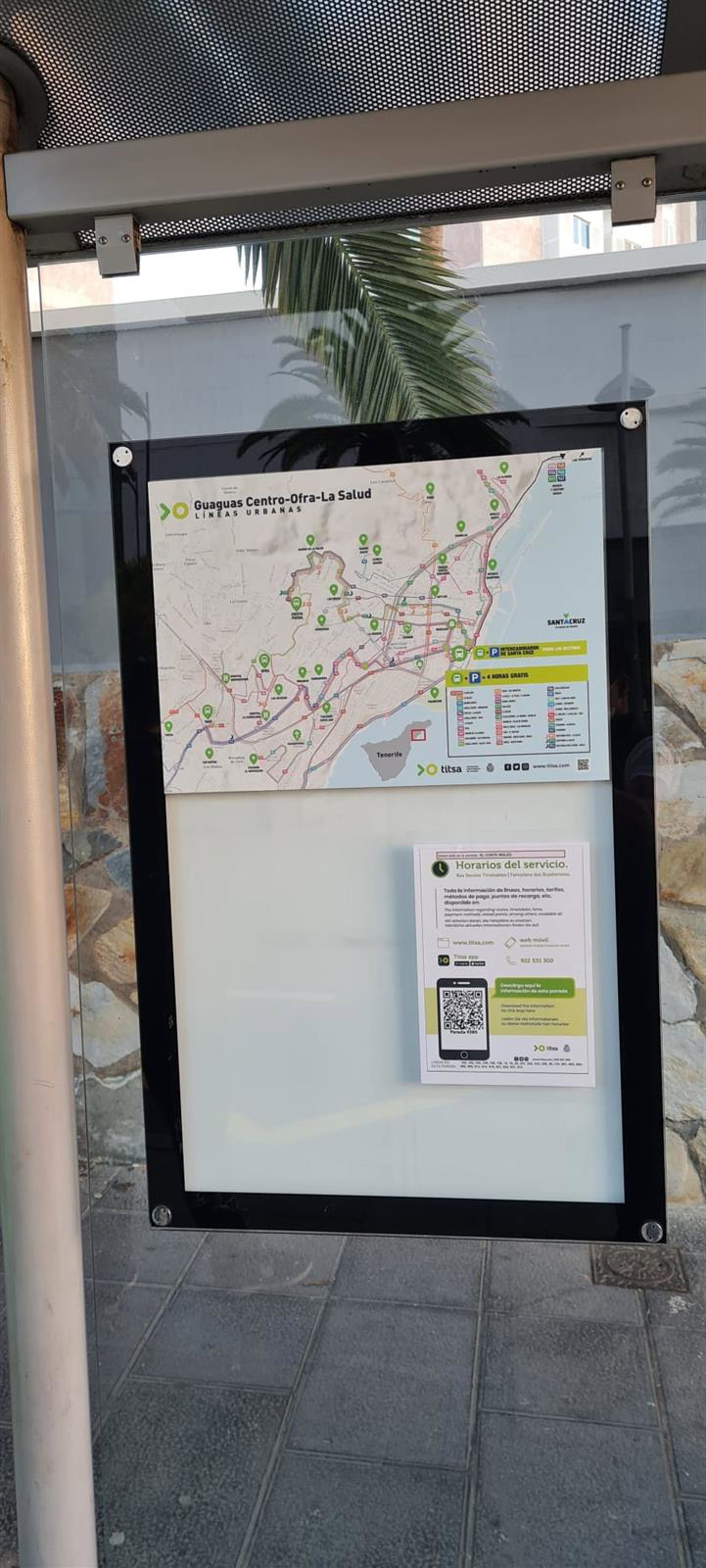 Transportes Interurbanos de Tenerife (Titsa) y el Ayuntamiento de Santa Cruz de Tenerife están llevando a cabo la mejora de la información del servicio urbano que se ofrece a los viajeros en las paradas de guaguas del municipio.