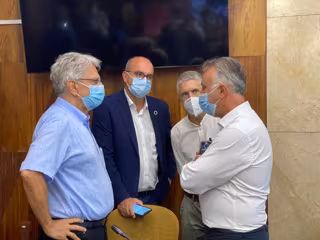 El consejero de Seguridad del Gobierno de Canarias, Julio Pérez, el delegado del Gobierno, Anselmo Pestana, el ministro del Interior, Fernando Grande Marlaska, y el presidente de Canarias, Ángel Víctor Torres, en una reunión en La Palma - DELEGACIÓN DEL GOBIERNO