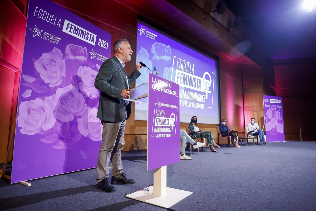 El secretario general del PSOE de Canarias y presidente del Gobierno autonómico, Ángel Víctor Torres, interviene en el acto de clausura de la Escuela Feminista María Domínguez - PARTIDO SOCIALISTA