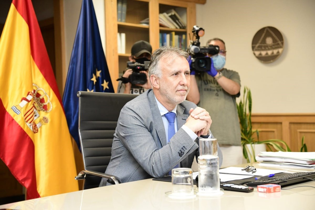 El presidente del Gobierno de Canarias, Ángel Víctor Torres, este jueves durante una videoconferencia - GOBIERNO DE CANARIAS
