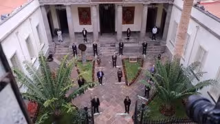Firmantes del 'Pacto de Reconstrucción' de Canarias en el patio del Parlamento - PARLAMENTO DE CANARIAS