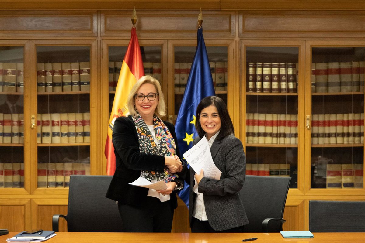 La consejera de Economía, Conocimiento y Empleo del Gobierno de Canarias, Carolina Darias, y la directora de la Inspección de Trabajo y Seguridad Social (ITSS), Soledad Serrano, han firmado este lunes un convenio de colaboración en materia de lucha contra el trabajo no declarado, el empleo irregular, el fraude a la Seguridad Social y en materia de formación profesional para el empleo.