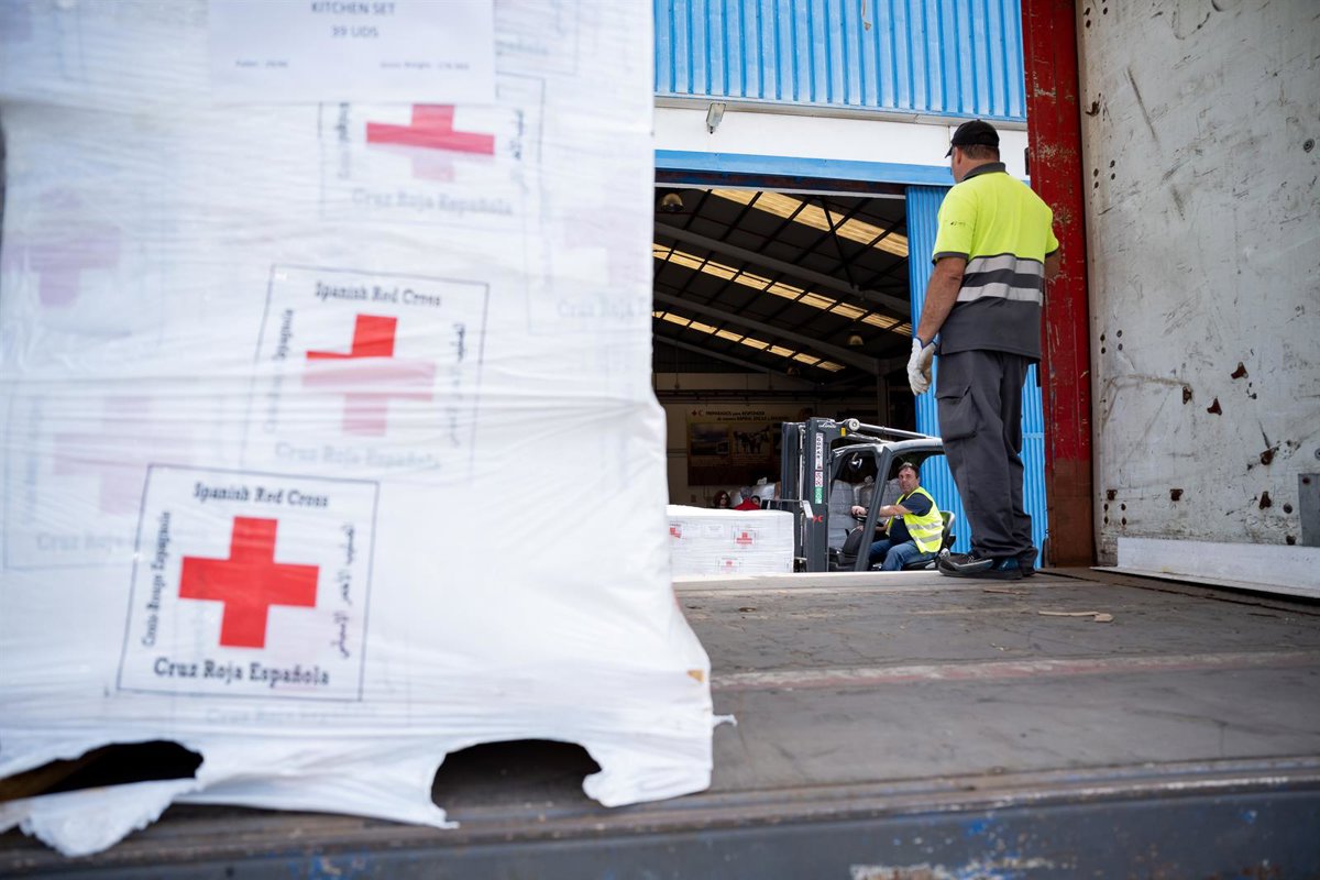 La ayuda humanitaria saldrá del centro entre las 08.30 y las 09.00 horas, según ha informado Cruz Roja, que indica que los contenedores llevarán 6.500 unidades de esterillas plásticas, 657 unidades de kits de cocina, además de 1.450 unidades de garrafas de agua colapsables de 20 litros.