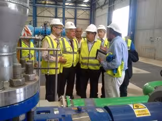 Durante su estancia en la isla el titular del Departamento visitó la desaladora de Puerto del Rosario, instalación ejecutada prácticamente en un 100%, que cuenta con las autorizaciones de Industria para su conexión eléctrica y tiene prevista su puesta en funcionamiento en fase de pruebas para finales de mes.