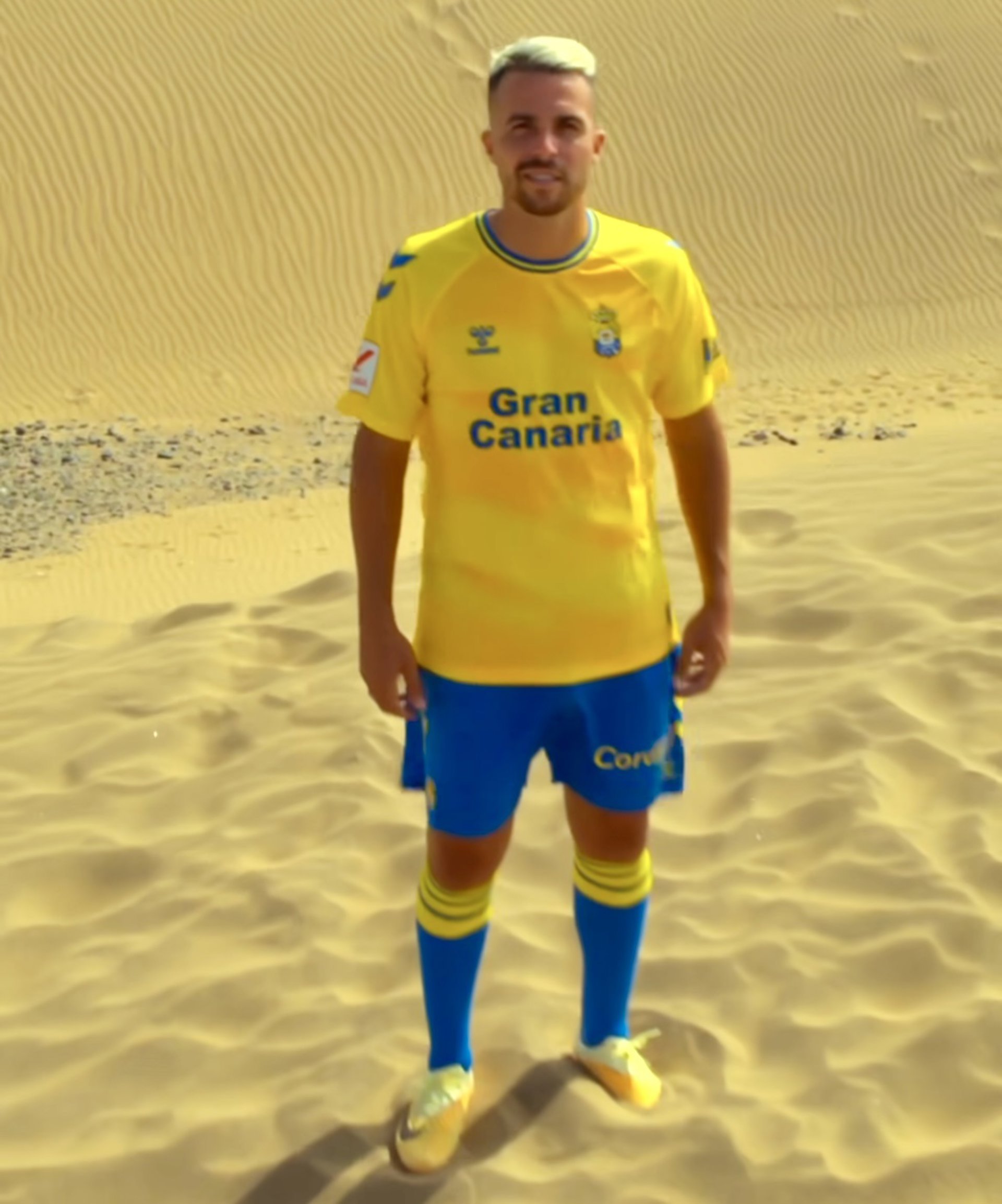 La Unión Deportiva Las Palmas ha presentado este domingo la nueva equipación que lucirá durante la temporada 2023/24 en su regreso a la Primera División, con una camiseta que evoca en su diseño a la dunas de Maspalomas con leves tonos más oscuros del clásico amarillo del conjunto canario.