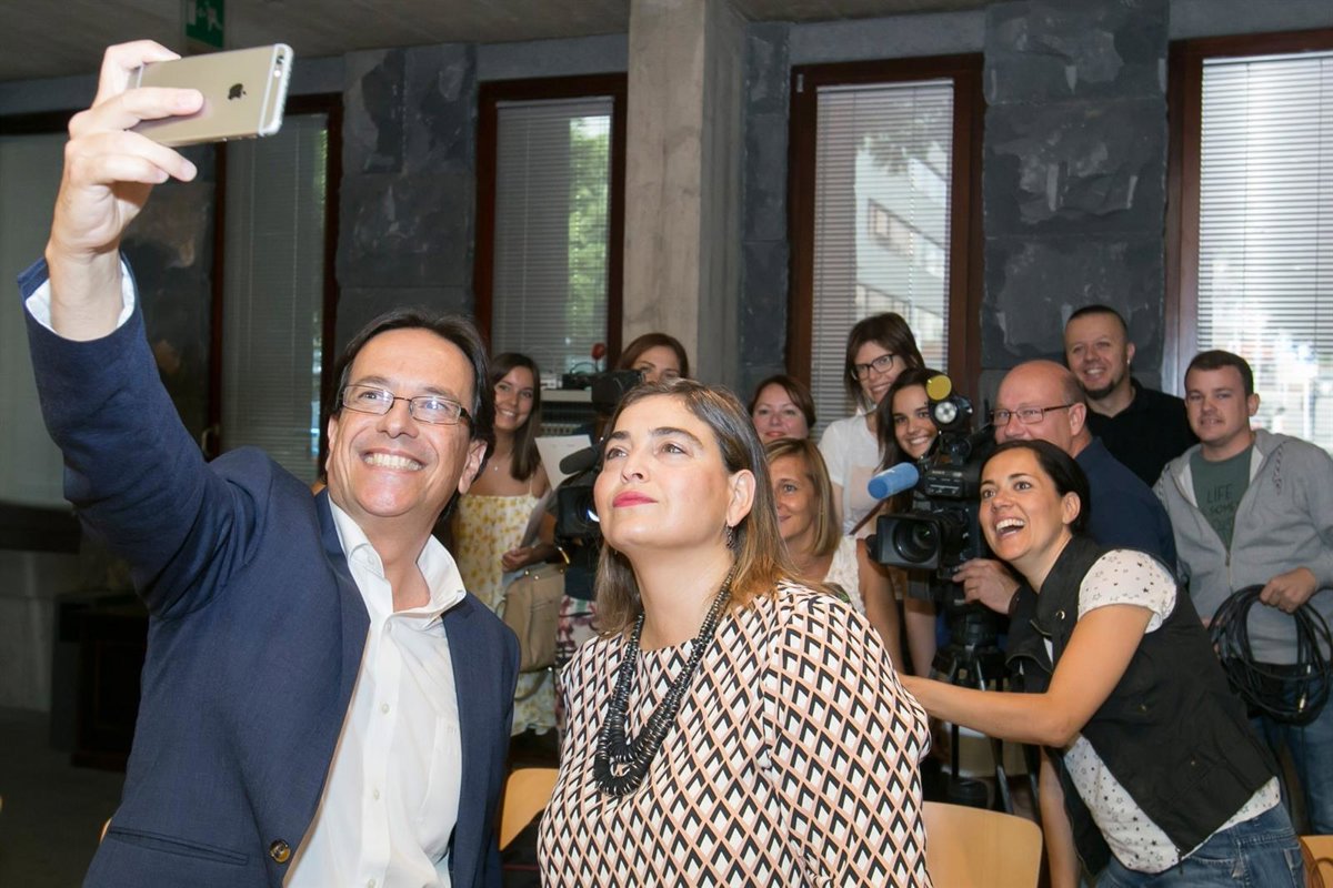 El viceconsejero de Turismo del Gobierno de Canarias, Cristóbal de la Rosa, y la gerente de Promotur Turismo de Canarias, María Méndez Castro, han presentado este miércoles la nueva campaña publicitaria de la plataforma de turismo interior 'Voy de Belingo'.