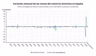 Variación mensual de las ventas del comercio minorista en España hasta noviembre de 2020 (INE) - EPDATA