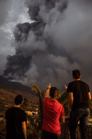 Un grupo de personas observa la erupción del volcán de Cumbre Vieja desde el mirador de Tajuya - Kike Rincón - Europa Press