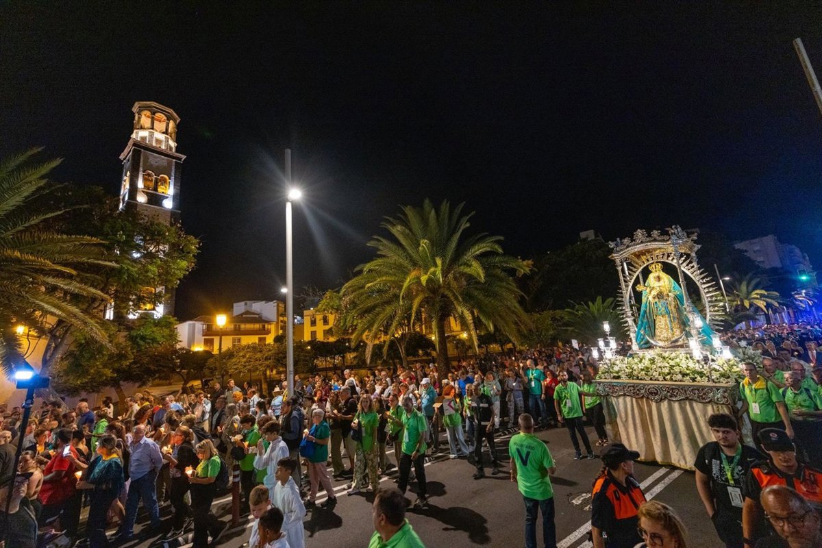 La imagen fue trasladada desde la Iglesia Matriz de La Concepción a la plaza de España para la celebración de una eucaristía de despedida, oficiada por el obispo de Tenerife, Eloy Santiago. la procesión de regreso se inició a las 22:00 horas de ayer, según ha precisado el consistorio capitalino en una nota de prensa difundida este sábado a los medios.