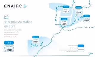 Con el dato de abril, se encadenan 43 meses consecutivos de crecimiento ininterrumpido del tráfico aéreo. Todos los centros de control han crecido por encima del 9%. Enaire destaca que este incremento está "muy por encima" de la media europea, que es del 2,8%.