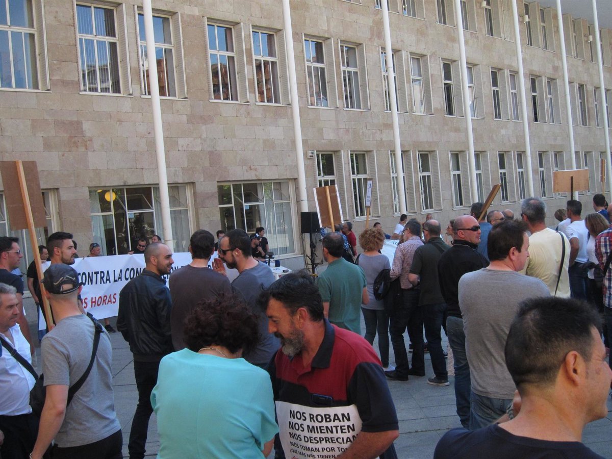 Unos 200 trabajadores del Ayuntamiento de Logroño, entre ellos numerosos policías locales y bomberos, han reclamado esta mañana "negociación" sobre sus condiciones laborales y "conciliación" frente a lo que consideran abuso de las horas extraordinarias.