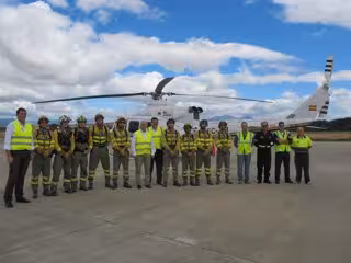La tripulación de esta aeronave está compuesta por dos pilotos, dos copilotos, un mecánico y un coordinador, además del personal ligado a la cuadrilla de acción rápida. Se trata de un helicóptero polivalente, ya que, además de la labor prioritaria de extinción de incendios forestales, puede realizar otros múltiples trabajos relacionados con el medio natural como tareas de vigilancia y prevención.