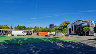 Las zonas de conciertos, con dos escenarios, y las de descanso y acampada han copado importantes zonas verdes y van a comprometer la circulación en un principal acceso de la ciudad en el que el tráfico estará restringido.