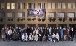 Una fotografía de mujeres, de diferentes perfiles profesionales, que "saltan", colocada en la fachada del Ayuntamiento de Logroño, sirve para conmemorar el 8 de marzo por el Consistorio capitalino, que busca, entre otras cuestiones, "poner en valor la fuerza de las mujeres y la necesidad de seguir impulsando esta causa para continuar rompiendo techos de cristal en la sociedad".