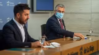 El portavoz del Gobierno de La Rioja, Álex Dorado, y el consejero de Desarrollo Autónomico, José Ángel Lacalzada, en comparecencia de prensa - GOBIERNO RIOJANO