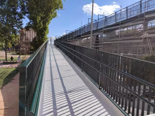 El acceso a la pasarela sobre la vía del tren en el entorno de Gonzalo de Berceo desde la calle Paula Montalt permanecerá cerrado desde el lunes, 27 de octubre, a las 15:00 horas hasta el martes, 28 de octubre, a la misma hora con motivo de los últimos trabajos de reparación de la pasarela.