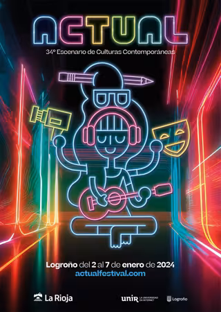 ACTUAL 24 estrena nueva imagen colorida, con corte futurista pero a la vez inspirada en los años 80 y en la música disco para volver a engrasar su maquinaria y ofrecer -en su 34 edición- más de 100 actividades que hagan vibrar a todos los públicos en el reconocido como "festival más madrugador del año" (del 2 al 7 de enero).