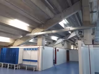 techo, se sitúan directamente bajo el graderío del estadio con una altura mínima de 2 metros y una máxima de 6. Esta circunstancia ha venido generando problemas de ruidos que afectaban sobre todo a la contigua sala de prensa. Asimismo era difícil dotarlos de unas condiciones climáticas adecuadas, a pesar de intentar combatir el frío del invierno calefactando el recinto con mucho tiempo de antelación.