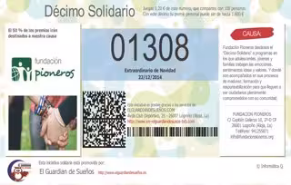 La Administración de Lotería número 15 de Logroño, 'El Guardián de Sueños', regentada por Jorge Ruiz Ortega, regala participaciones de décimos solidarios con el número 01308 a quienes deseen colaborar esta Navidad con los proyectos educativos de Fundación Pioneros destinados a adolescentes, jóvenes y familias, siempre necesitados de financiación privada.