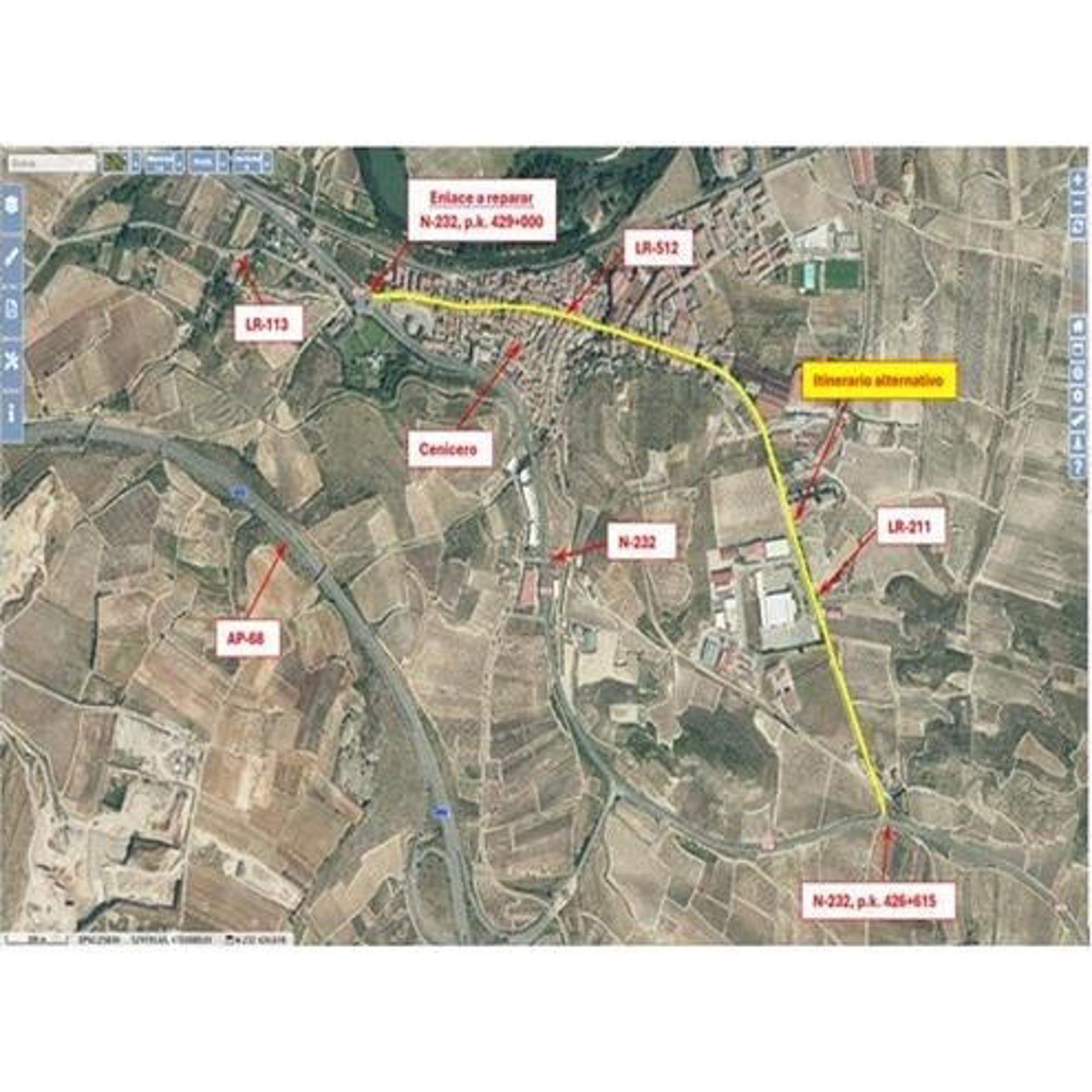 Para asegurar la fluidez del tráfico durante dicha afectación, se habilitará un itinerario a través de la carretera LR-512 (C/. La Victoria) y LR-211, hasta la intersección con la carretera N-232 en su km 426,615.