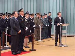 Durante su discurso, Bretón ha asegurado que "la tasa de criminalidad en nuestra comunidad está 16,5 puntos por debajo de la media nacional e inferior a su vez de comunidades limítrofes como País Vasco o Navarra". Unos resultados que se han conseguido "gracias a la labor de todos vosotros".
