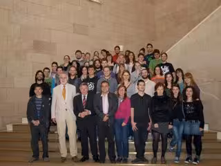 El alcalde de Logroño, Tomás Santos, ha recibido esta mañana al grupo de músicos de la Joven Orquesta Europea de Mandolinas y Guitarras y a responsables de Contrastes Rioja, que colaboran en la organización de la décimo primera edición del encuentro internacional EGMYO 2011 (European Guitar and Mandolin Youth Orchestra), que se celebra desde este miércoles en La Rioja.