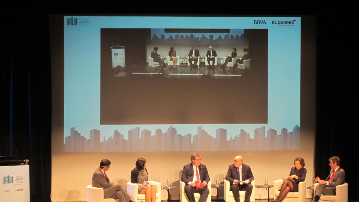 Los regidores de estas cinco ciudades han participado este miércoles en un foro sobre el futuro de las ciudades en Bilbao. Las ciudades concentran actualmente el 54% de la población y generan el 80% del PIB mundial, mientras que en el caso del Estado español representan el 80% tanto en términos de habitantes como de PIB, según ha recordado el economista jefe para España de BBVA, Miguel Cardoso.