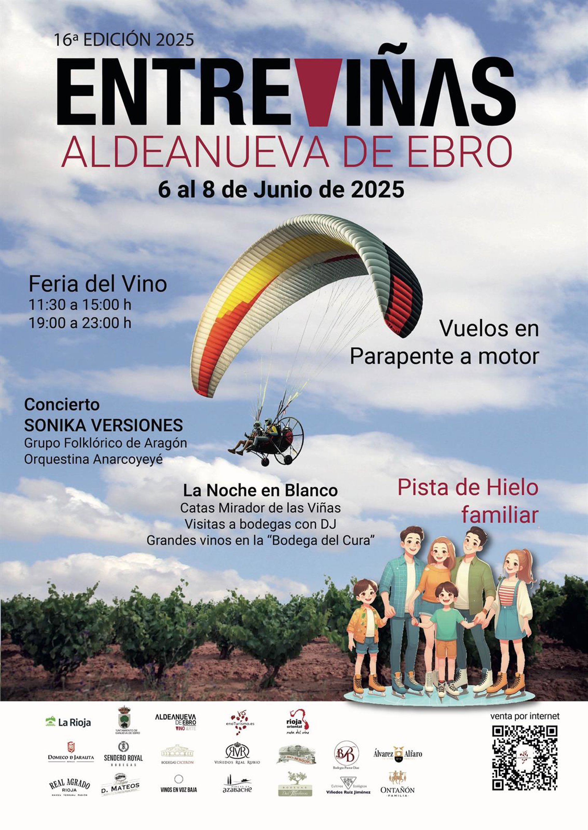 De nuevo el presupuesto supera los 90.000 euros para programar una larga serie de actos en tono al vino de Aldeanueva de Ebro, del que sale el 10 por ciento de la producción del vino de la DOC Rioja. Los vuelos en paratrike no son el único gran atractivo del Entreviñas 2025 que de nuevo va mucho más allá de una simple feria del vino y propone actos culturales, gastronómicos, deportivos y lúdicos que, organizados por el Ayuntamiento de 'La Aldea', implican a 15 bodegas y la colaboración de los casi 2.900 habitantes de la localidad, que se prepara ya para acoger a unos 12.000 visitantes que podrían llegar a 15.000 si el tiempo acompaña.
