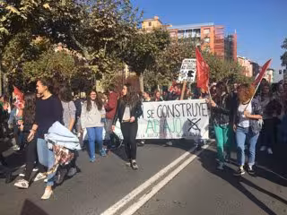 La manifestación ha recorrido las calles del centro de Logroño, incluyendo la Gran Vía en la que los estudiantes participantes han realizado una pequeña sentada.