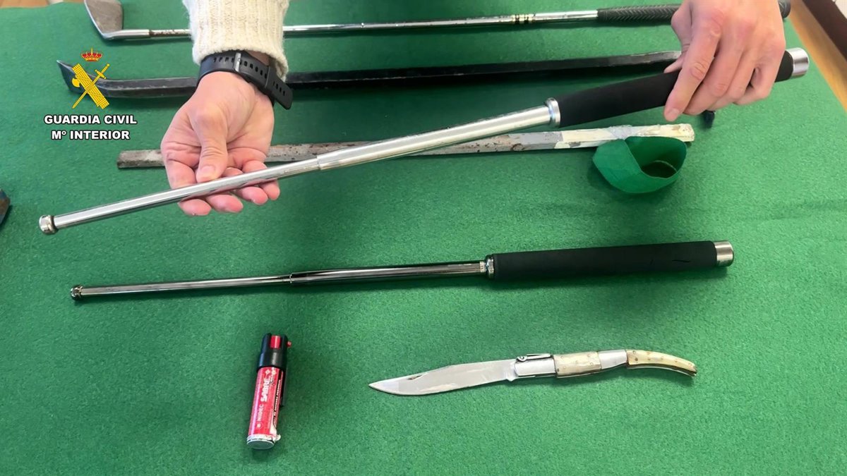 En el otro turismo se intervino una barra de hierro preparada para su uso como objeto contundente. Durante la identificación se constató que uno de los implicados tenía en vigor una orden de búsqueda, personación y detención emitida por el Juzgado de Instrucción y Primera Instancia de Medio Cudeyo (Cantabria), por lo que se procedió también a su detención. Contra siete de los implicados se tramitaron las correspondientes actas-denuncia conforme a la Ley 4/2015, de Protección de la Seguridad Ciudadana, por portar, exhibir o usar armas prohibidas, así como por hacerlo de manera negligente, temeraria o intimidatoria.