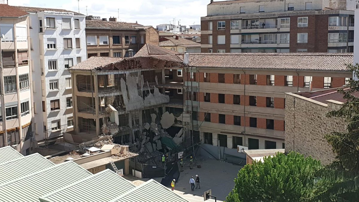 Ha señalado que el derrumbe no ha caído al patio del centro, "porque era una zona vallada por obras, tenía unos metros de distancia respecto a la zona de obra y los escombros han caído muy en vertical, incluso alguno todavía está colgando desde las ferrallas que hacen lo que es el forjado, están colgando y bueno, pues ha sido un colapso vertical".