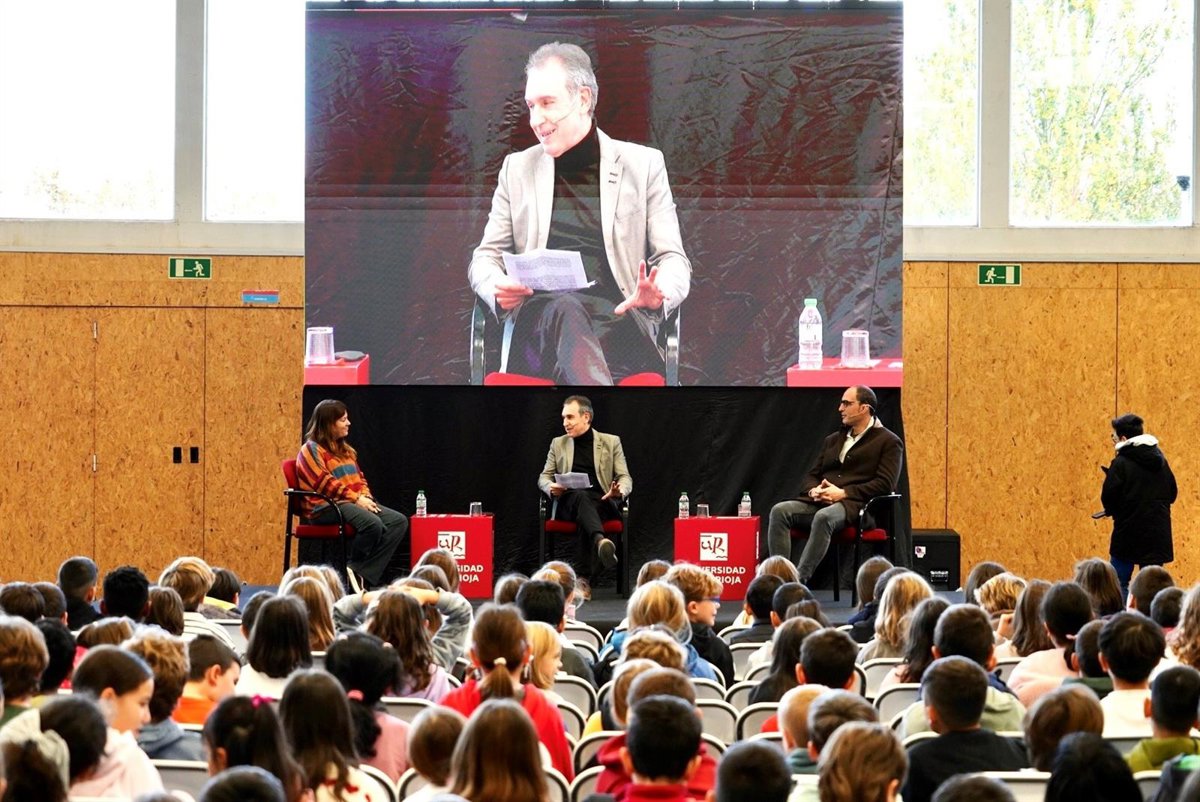 Isaac Palmiola, autor de sagas como Perrock Holmes, y Ana Punset, autora de Unicornia, han ofrecido este martes el Encuentro 'Mis libros favoritos', que organiza la Universidad de La Rioja dentro de la Semana Cultural 'Valle de la Lengua' del Campus Valle de la Lengua.