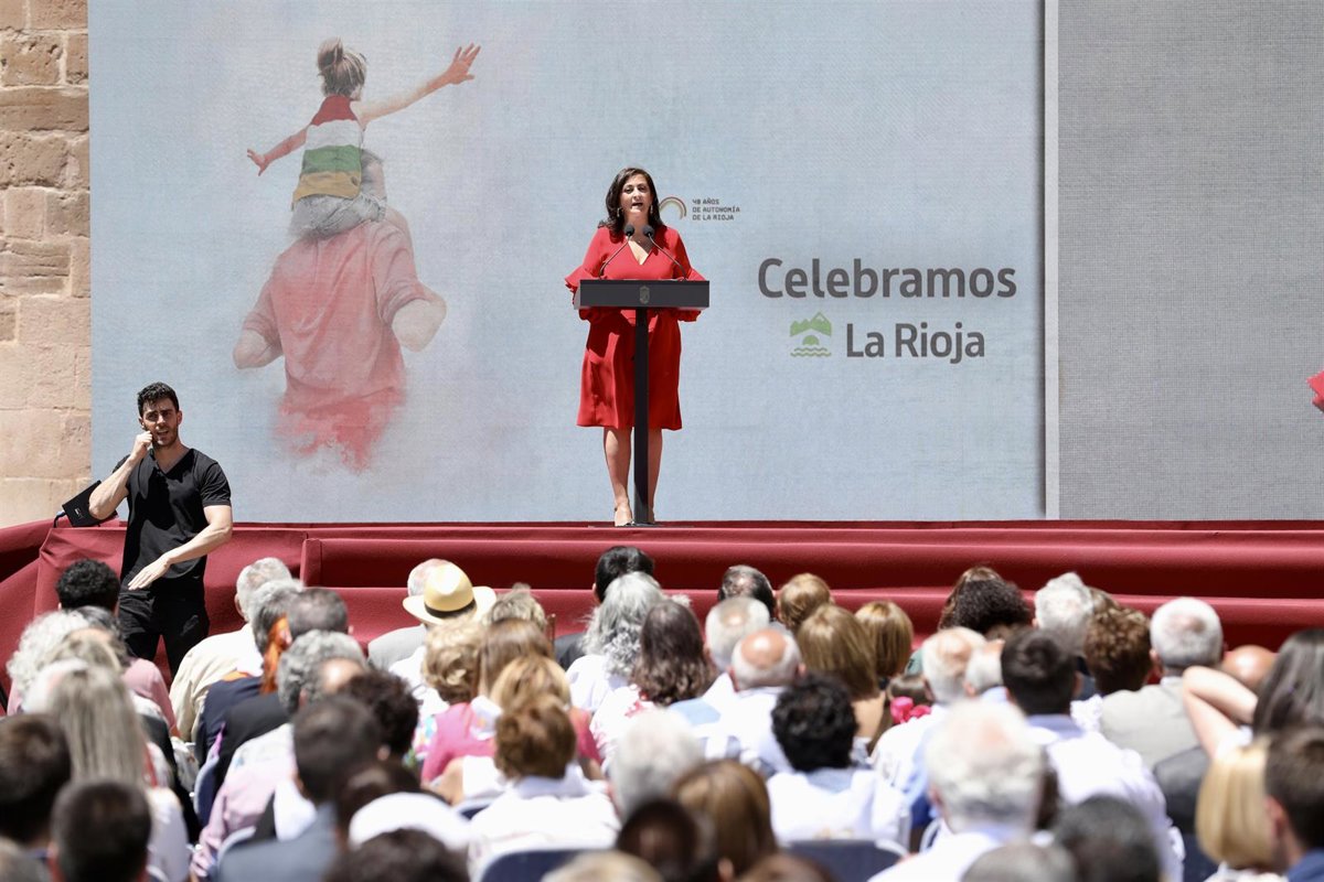 En su intervención, ha destacado que La Rioja es "una tierra conectiva, comunicativa, colaborativa, solidaria, generosa" y el Estatuto de Autonomía "nos reafirmó en estos valores y reforzó nuestra aversión a cualquier forma de exclusivismo o exclusión". Además, ha subrayado que es "una tierra pacífica y tolerante, en la que nunca se ha utilizado ni la violencia ni el vandalismo como solución a los conflictos. El diálogo sí, pero siempre con un único límite, que no es otro que la prioridad del interés general ante intereses que aun siendo legítimos son particulares".