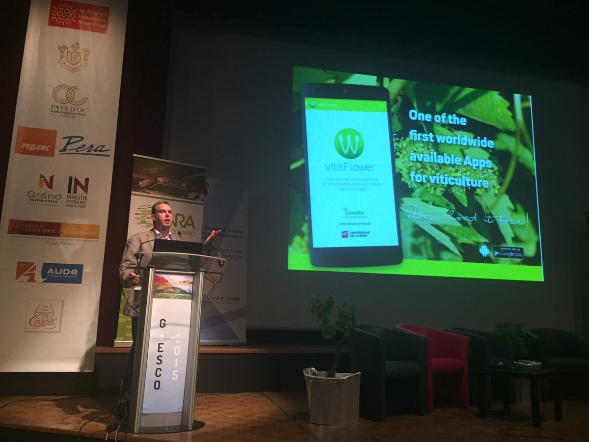 El responsable del Grupo Televitis de la Universidad de La Rioja, Javier Tardáguila, ha presentado en Francia la app vitisFlower, una aplicación para smartphones que permite determinar el número de flores por inflorescencia en el viñedo, de forma automática, rápida y no destructiva.