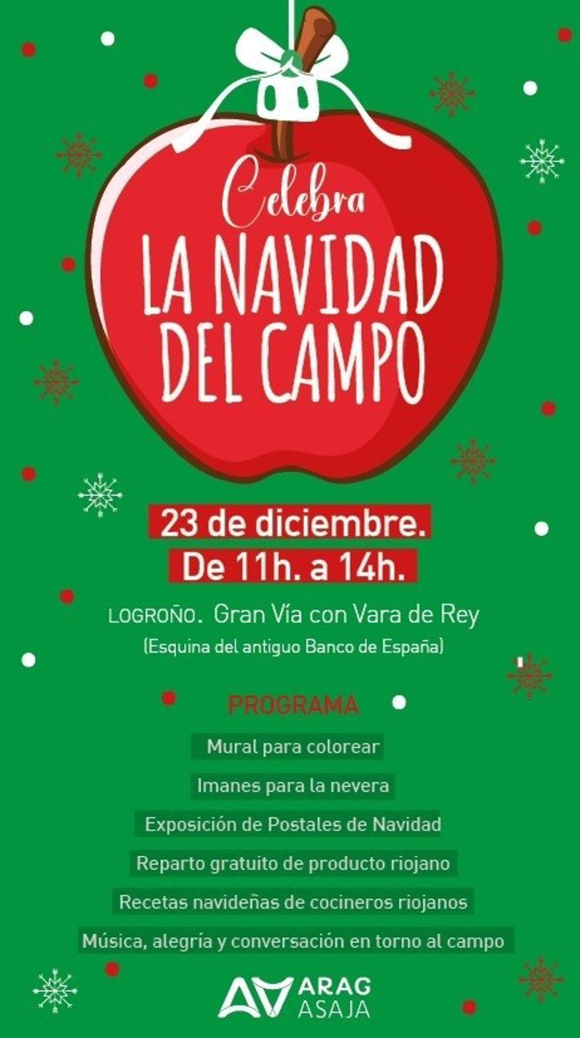 En resumen, se tratará de un acto lleno de música, alegría y conversación en torno al campo. ARAG-ASAJA anima a toda la sociedad riojana a participar en este evento de La Navidad en el Campo.