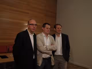 "Estamos en un proceso de cambio de dirección, queremos establecer la interrelación entre empresarios" ha afirmado esta mañana el nuevo presidente de la AREF, Román Palacios acompañado por el anterior presidente y vicepresidente actual, Santiago Vivanco y el director de la asociación y decano de la facultad de Económicas de la UR, Juan Carlos Ayala.