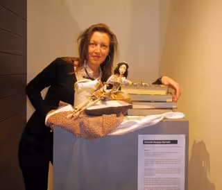 Griselda Gorgojo es técnico de análisis y control de calidad y expone 'Ocher', una muñeca modelada y colada, realizada con articulaciones unidas mediante piezas de bisutería. Comenzó con esta técnica hace cuatro años, "cuando por casualidad descubrí las muñecas de autor a través de Internet y rápidamente se convirtieron en mi pasión", afirma.