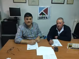 El secretario general de UPTA-Rioja, Javier Marzo, y el presidente de APVPR, José Pujades, han firmado el documento por el que se procede a la efectiva integración de la Asociación Profesional de Vendedores de Prensa de La Rioja en el sindicato.