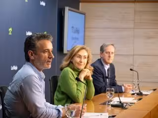 La consejera de Salud, María Martín, junto al subdirector general de Estrategia de Salud Mental y Emocional, Carlos Piserra, y el coordinador del Programa Saludablemente+, J. Antonio Carballo - GOBIERNO DE LA RIOJA