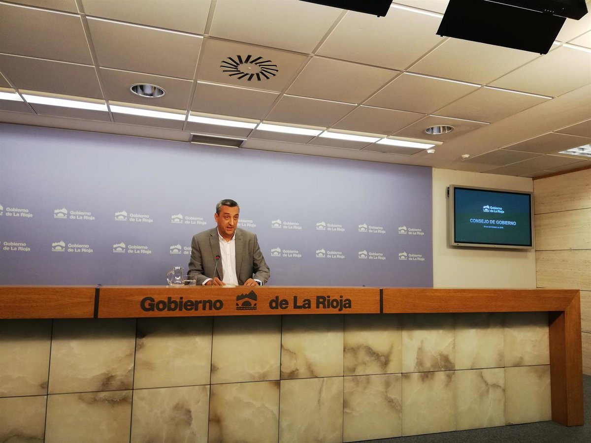 El portavoz del Gobierno de La Rioja, Chus del Río, en la rueda de prensa para dar cuenta de los asuntos aprobados en Consejo. - EUROPA PRESS