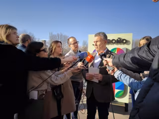 Conrado Escobar, con los periodistas antes de presentas Logroño 2050 - EUROPA PRESS