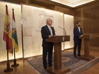 Ambos han comparecido ante los medios de comunicación, tras mantener una reunión de seguimiento del acuerdo, desarrollada en el Salón Rojo del Palacio del Gobierno riojano. Del encuentro, ha salido también el compromiso de ejecutar, a partir de septiembre, un 'Plan de Calidad Democrática'.