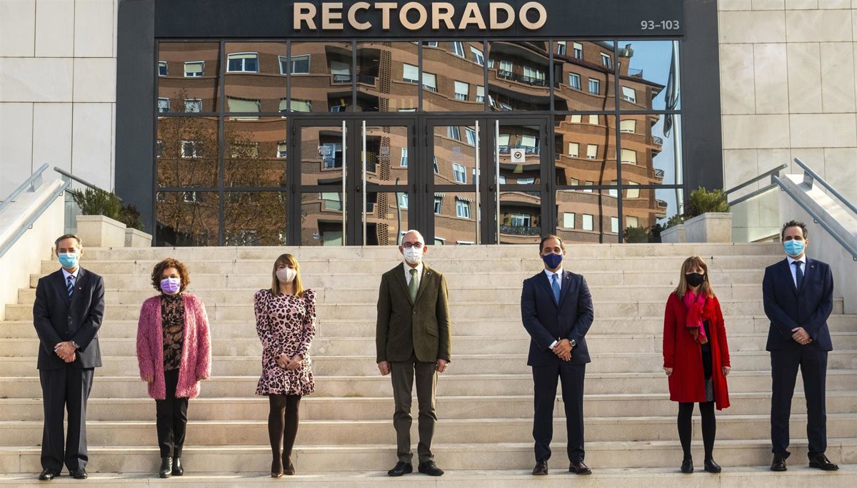 El Equipo Rectoral de la UR con el nuevo rector, Juan Carlos Ayala, en el centro - ALVARO ARAGON