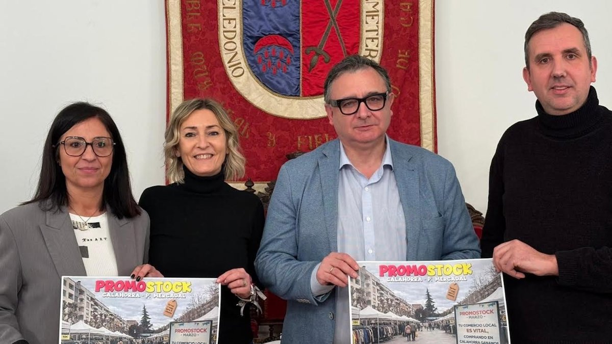 La concejala de Comercio, Raquel Moral, el gerente de la Agencia de Desarrollo Económico de La Rioja (ADER), Luis Pérez y la presidenta y el vicepresidente de la asociación 'Calahorra, ciudad comercial', Rebeca Losantos y Jesús Santolalla, respectivamente, han dado a conocer las acciones de dinamización comercial que se desarrollarán en Calahorra durante 2026.