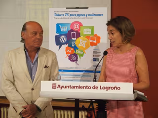 La alcaldesa de Logroño, Cuca Gamarra, y el presidente de la Federación de Empresarios de La Rioja, Jaime García Calzada, han presentado este miércoles la oferta formativa para pymes y autónomos que el Ayuntamiento y la FER proponen para este trimestre del año y que nuevamente volverá a centrarse en el ámbito de la tecnología.