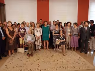 La alcaldesa de Logroño, Cuca Gamarra, ha participado este viernes en la celebración del Día Internacional de los Abuelos, acto que ha tenido lugar en el Salón de Retratos del Ayuntamiento de Logroño y en el que han participado los abuelos más mayores de la ciudad.