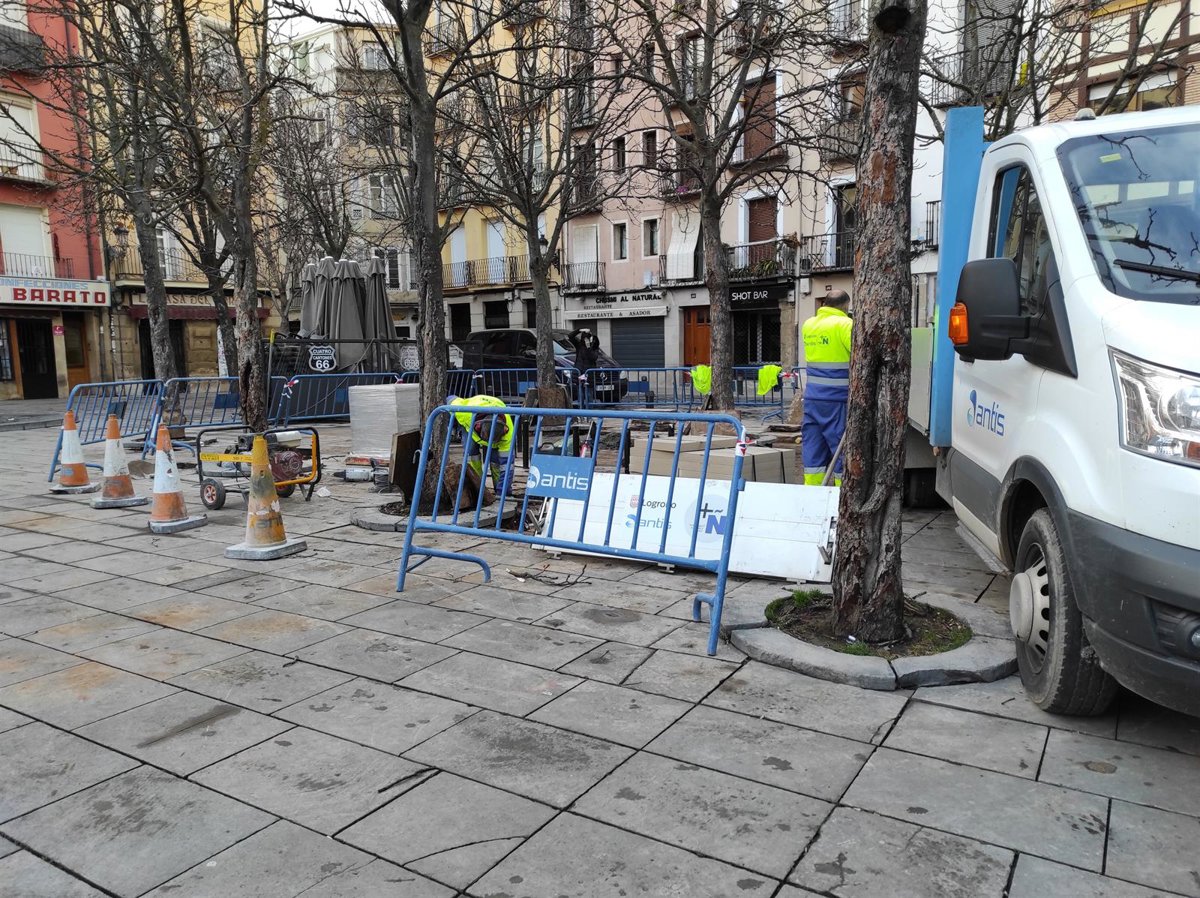 El Ayuntamiento de Logroño ha iniciado una serie de obras en la plaza del Mercado para mantener "vivo" este céntrico espacio de la ciudad, según han destacado los concejales de Patrimonio y Centro Histórico, Adrián Calonge, y Participación Ciudadana, Kilian Cruz. Están realizadas por la empresa Antis con un coste de unos 15.000 euros.